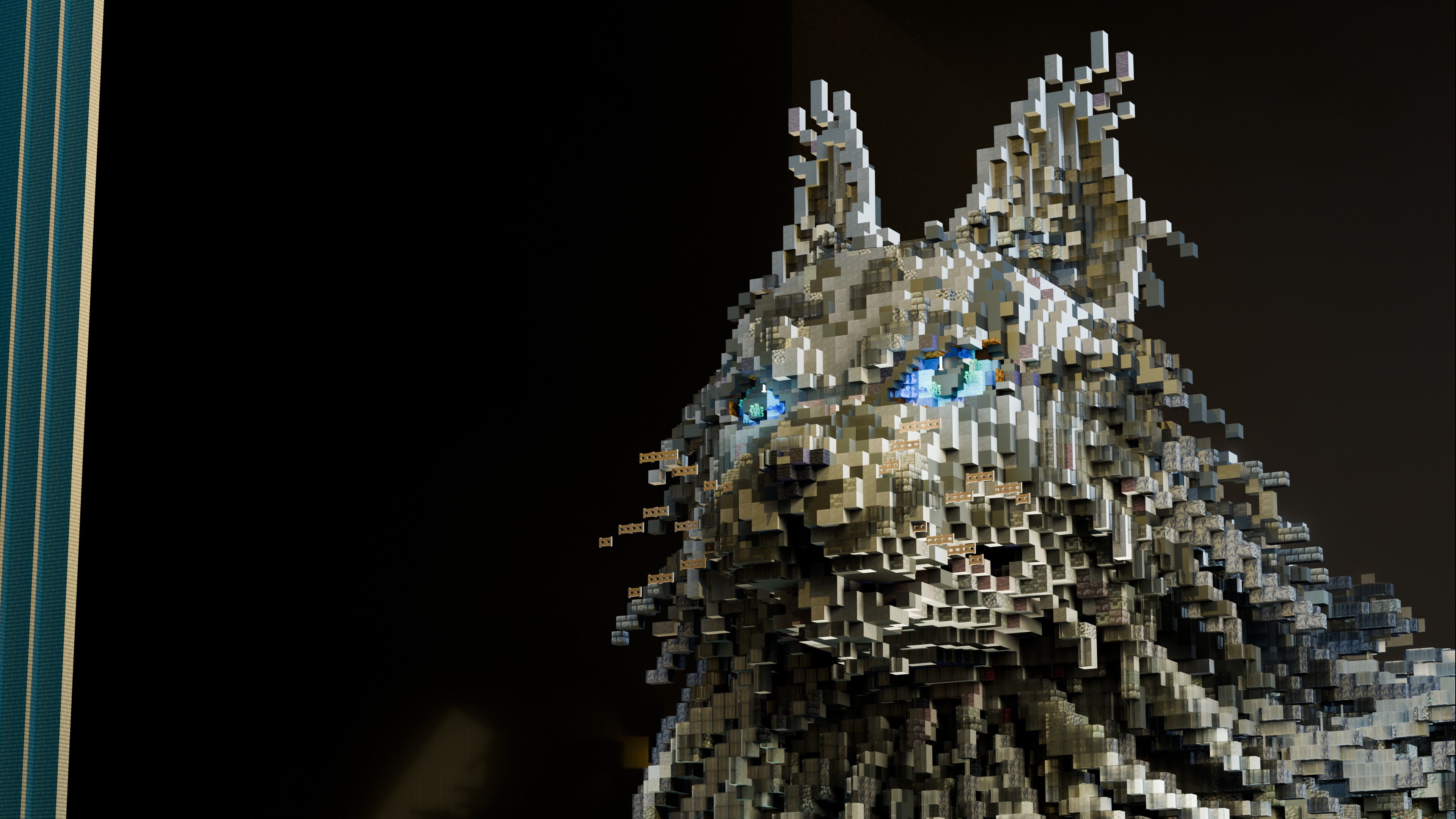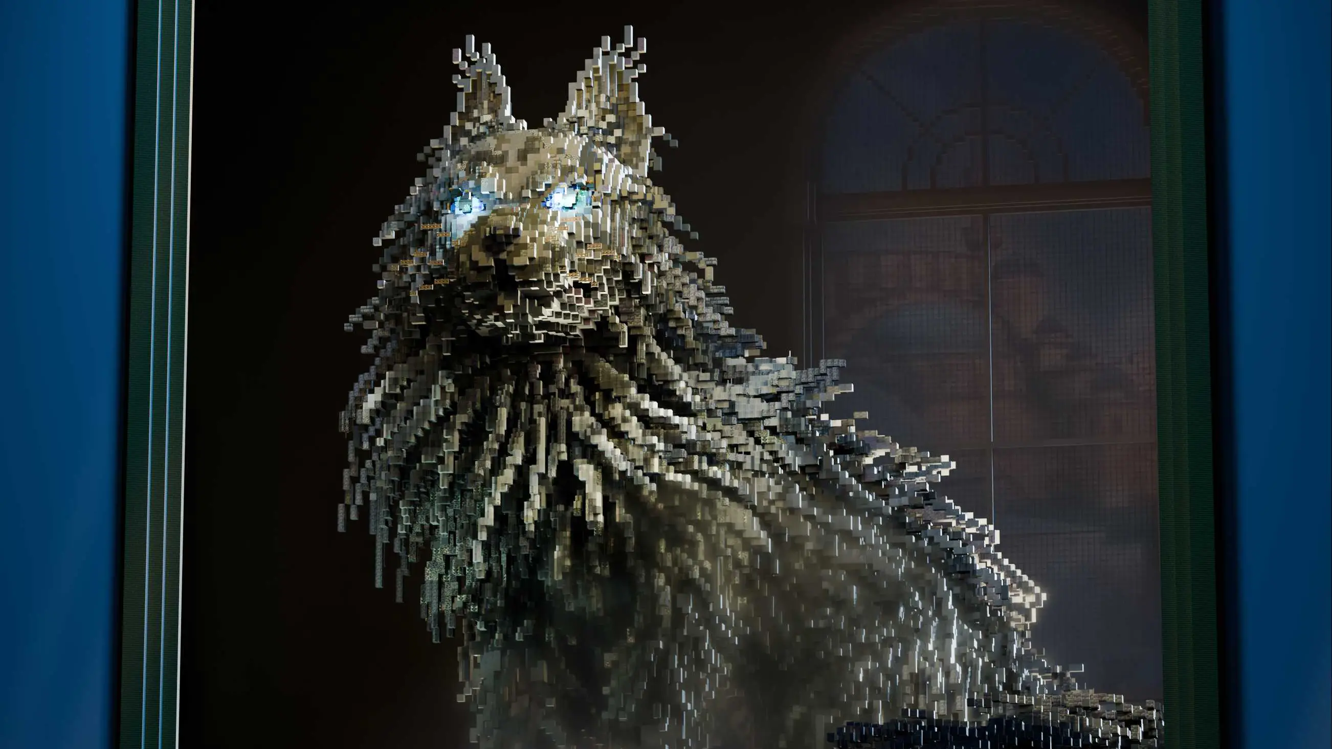 Minecraft voxel art, featuring a Maine Coon cat in the painting. by Lazy Cookie